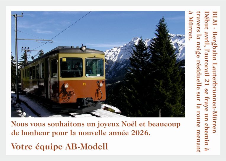 Nouveauté: les trains de MOB Golden Pass arrivent bientôtLes très beaux trains MOB Golden Pass sont en production et seront livrés au cours du mois de septembre. La locomotive publicitaire est une édition limitée. Obtenez votre modèle aujourd'hui. Toutes les informations peuvent être trouvées dans notre PDF. |